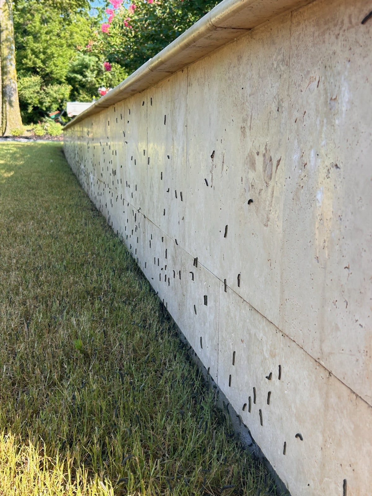 • Caterpillars curled up on sidewalks, patios, or crawling through the grass